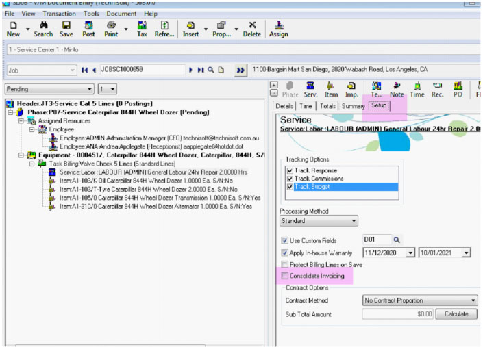 For example it is now possible to post a standard invoice, and then create three more Sub-Invoices for consolidating to a Consolidated Invoice on the same job.